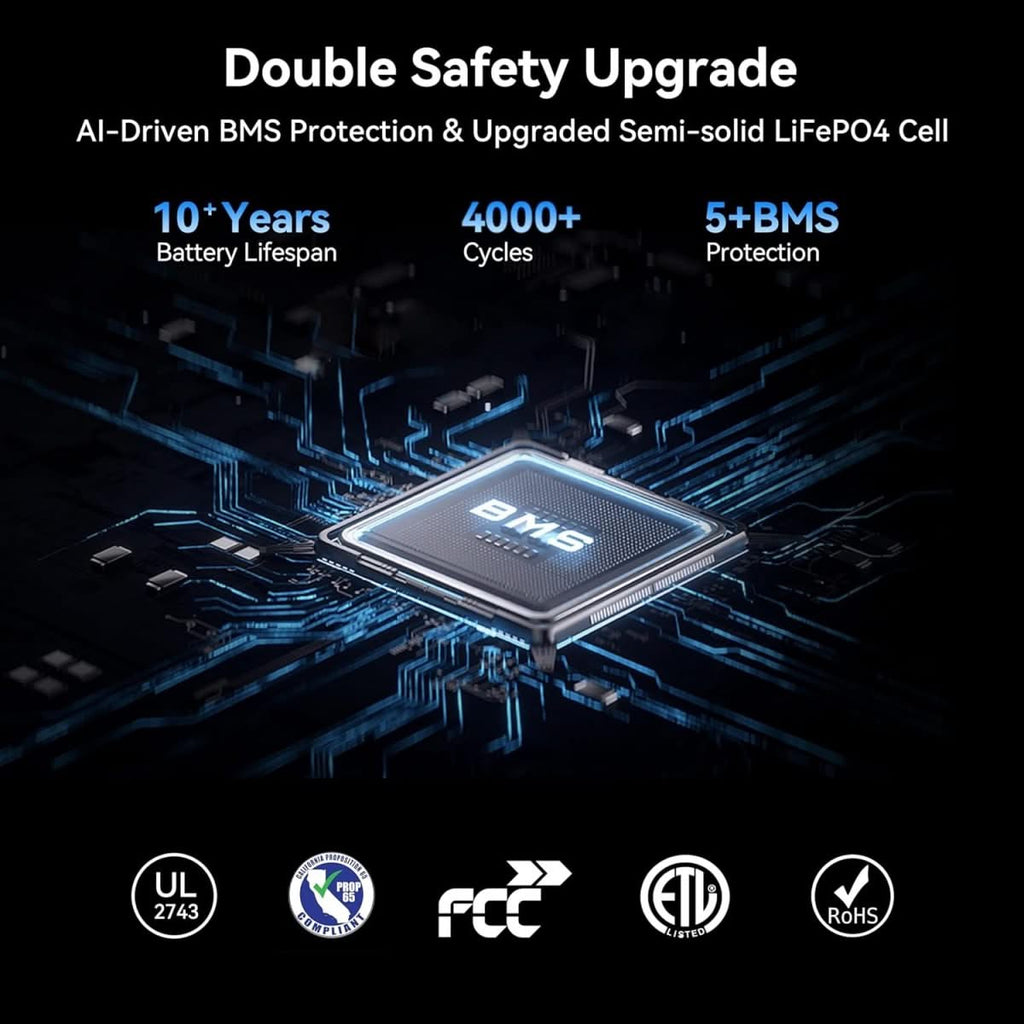 Engineered with long-lasting LiFePO4 cells, it delivers up to 4000 charge cycles while maintaining over 80% capacity. A seamless 15ms UPS ensures your devices stay protected and powered without interruption.