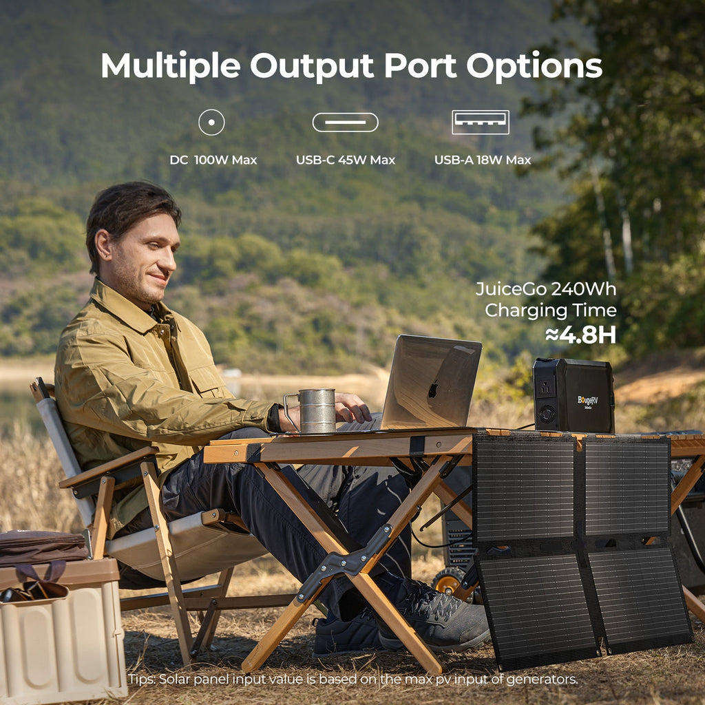BougeRV 100W N-Type Fiberglass Foldable Portable Solar Panel
