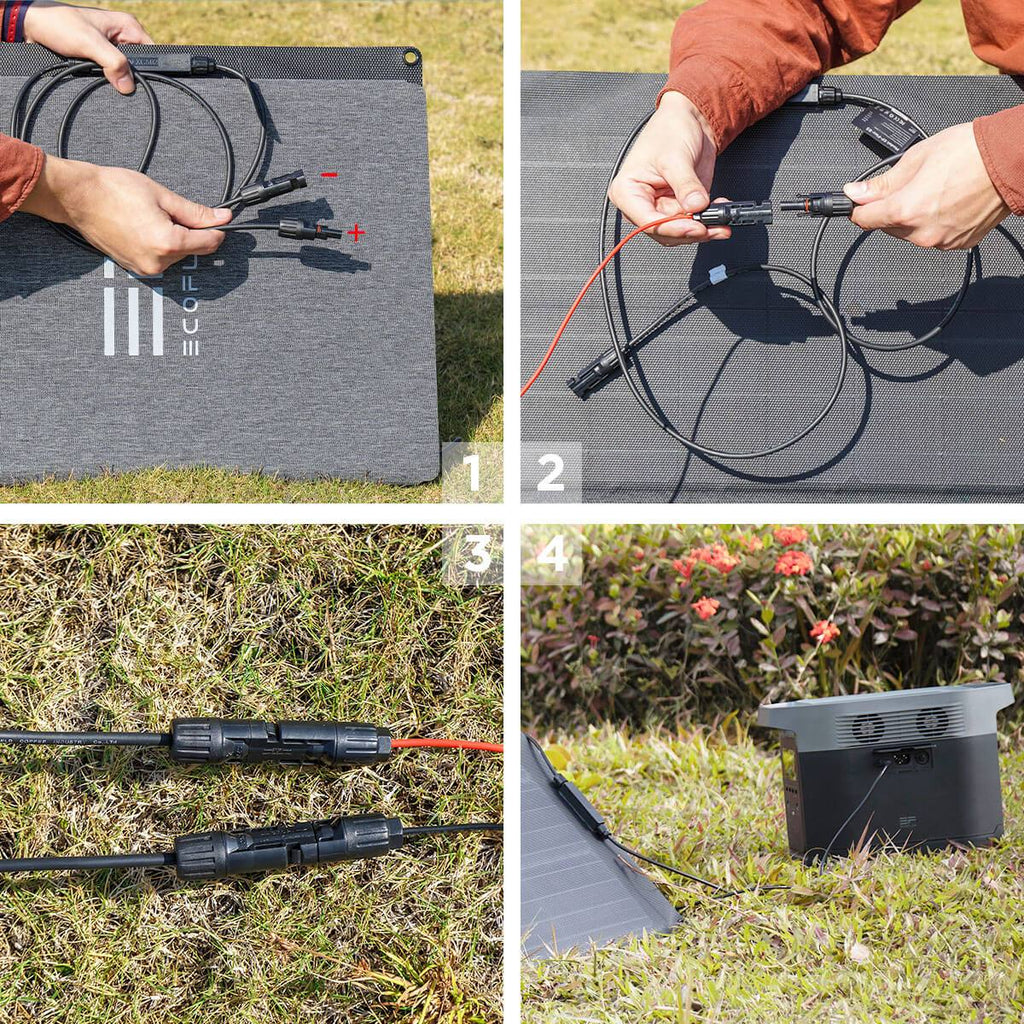 UPGRADE HIGH EFFICIENCY: Compared with other solar panels, the chainable feature enables you to chain solar panels together with the parallel cable which gives you ample power for your power station ( 4x110W Solar Panels in parallel for DELTA, 2x110W Solar Panels in parallel for RIVER)