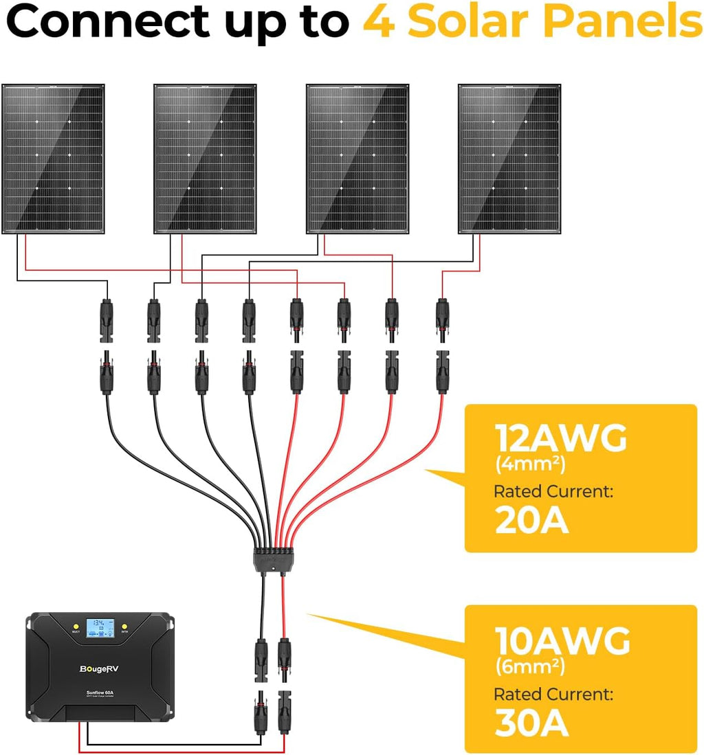 Solar Parallel Connectors for 2-4 Solar Panels, 2 to 8 Y Branch (MFFFF/FMMMM)