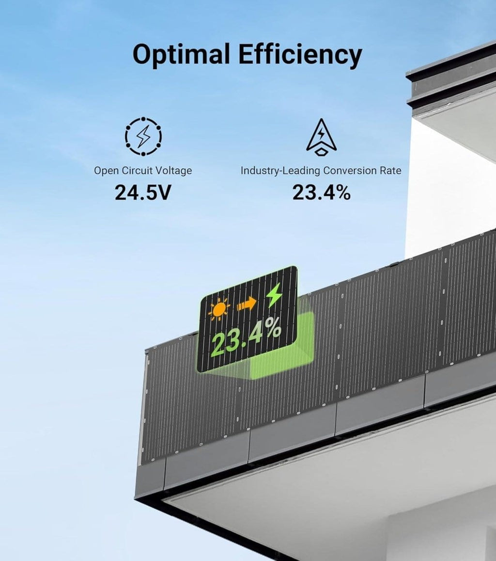 Weighing just 8.8 lbs and only 0.11 inches thick, this lightweight panel is up to 70% lighter than conventional models. Its advanced polymer material provides extreme flexibility, allowing it to bend into a U-shape for installation on curved surfaces such as RVs, boats, rooftops, and balconies.