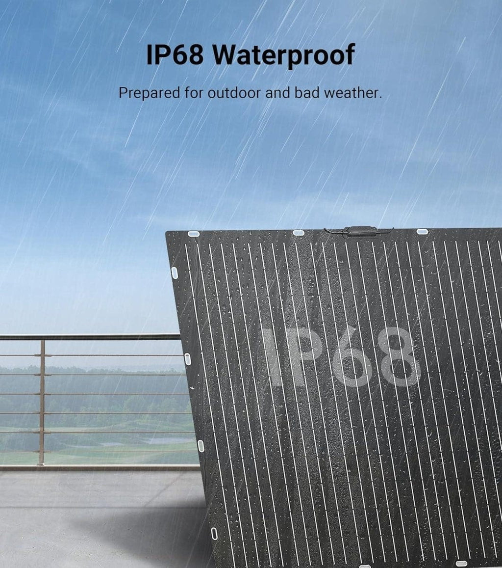 Designed to withstand harsh conditions, the panel features an 11-layer protective coating and operates in temperatures ranging from -10℃ to 40℃. With IP68 waterproof protection, it resists water damage, making it ideal for outdoor activities such as camping, hiking, and marine use.