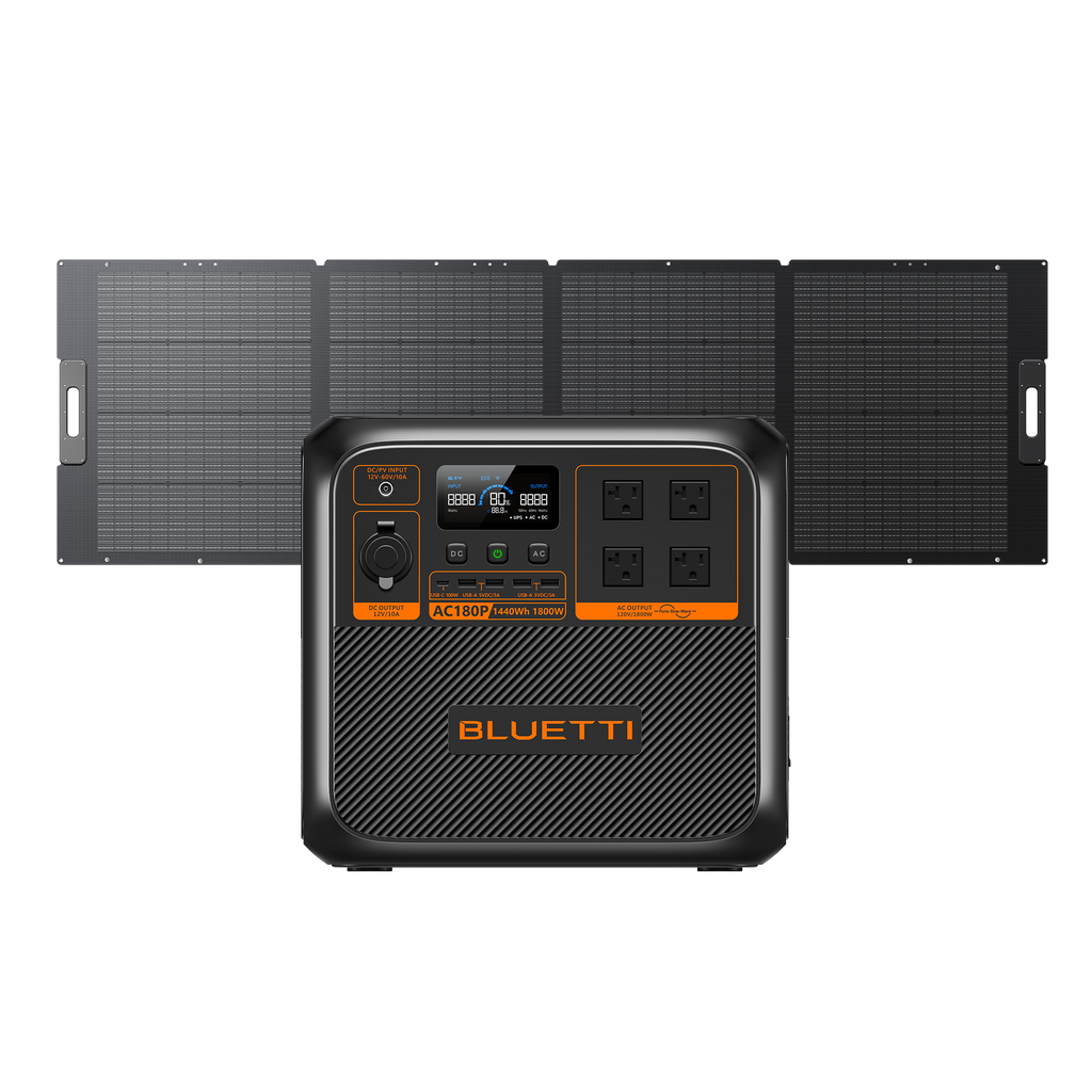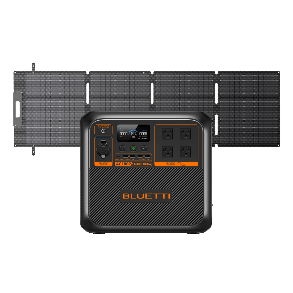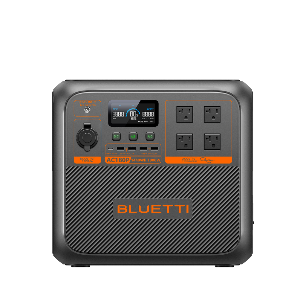 The BLUETTI AC180P delivers 1,800W AC output with a 1,440Wh LiFePO₄ battery, ideal for home backup, RVs, camping, and off-grid use. Supports fast charging, solar input, and multiple outlets to power appliances and devices with clean, reliable energy anywhere.