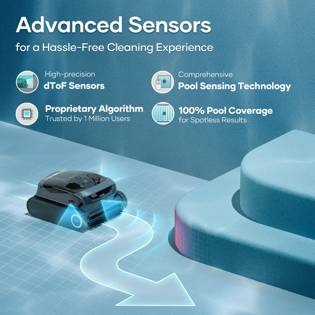 Adaptive Path intelligently adjusts to bowl-shaped, diamond-shaped, and other complex pool floors, preventing missed spots and repetitive loops. This ensures complete, efficient cleaning even in uniquely designed or irregular pools.