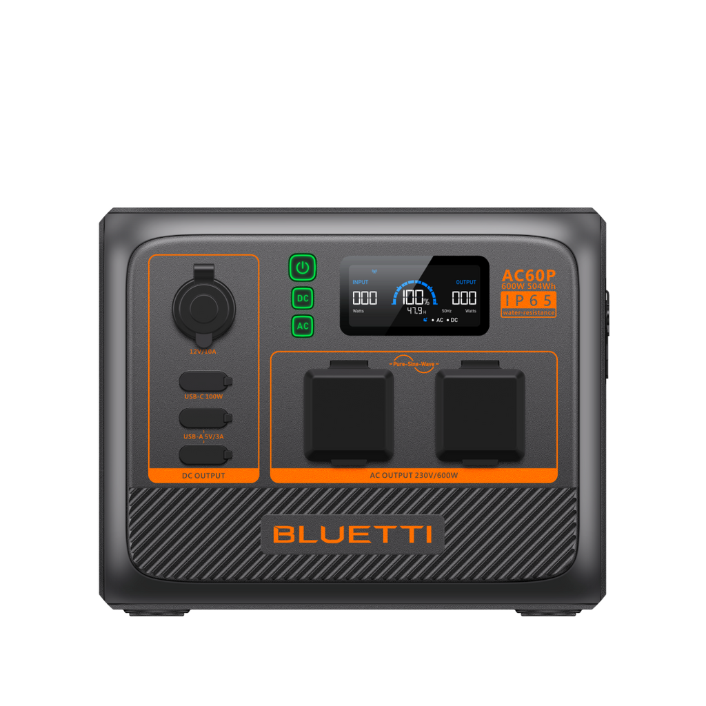 Compact yet powerful, the BLUETTI AC60P delivers 600W output with a 504Wh LiFePO₄ battery, perfect for camping, RVs, outdoor adventures, and home backup. Features fast charging, multiple output ports, and solar compatibility for reliable off-grid power anywhere.