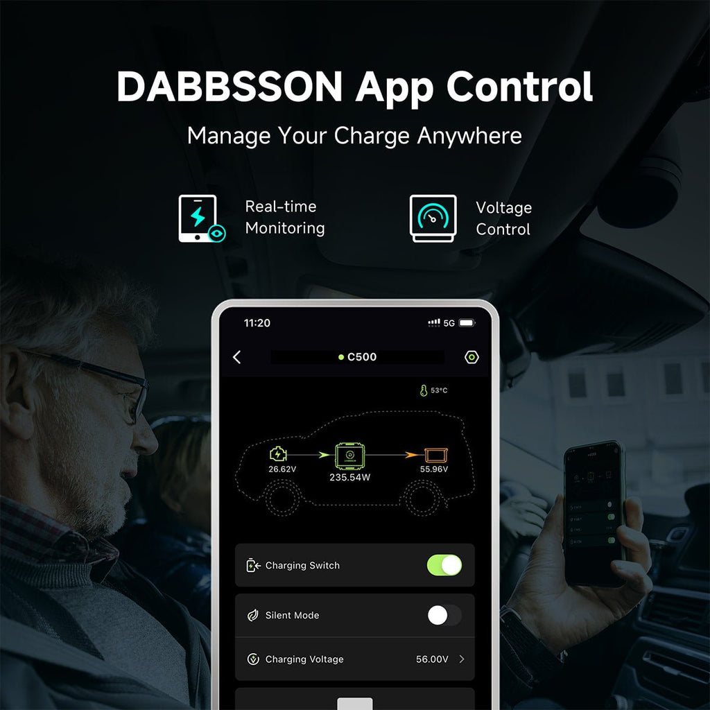Easily controlled through the Dabbsson App, this car charger allows smart voltage adjustment and real-time status monitoring for optimized energy management.