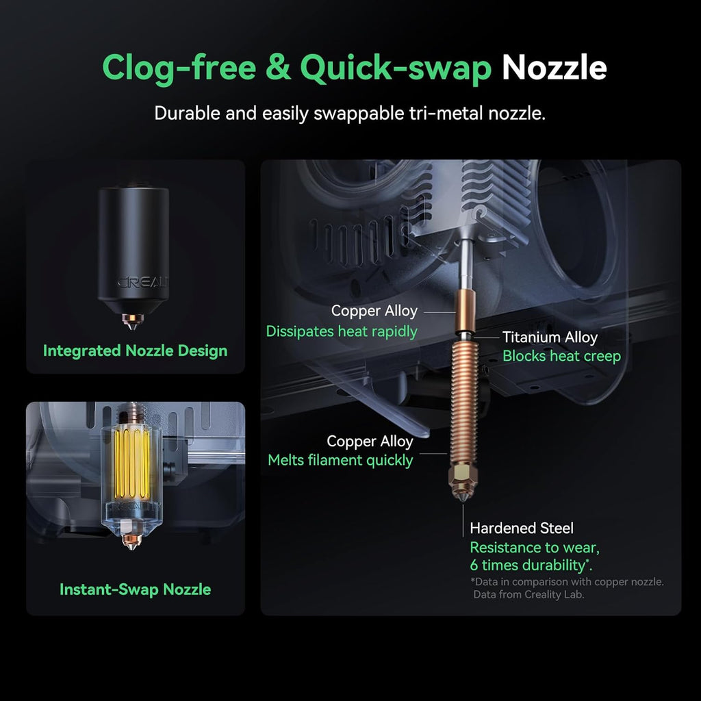 Driven by step-servo motors with FOC control algorithms on the X and Y axes, the Creality Hi Combo delivers exceptionally smooth motion. It achieves printing speeds of up to 500 mm/s with a maximum acceleration of 12,000 mm/s², combining speed with precision.