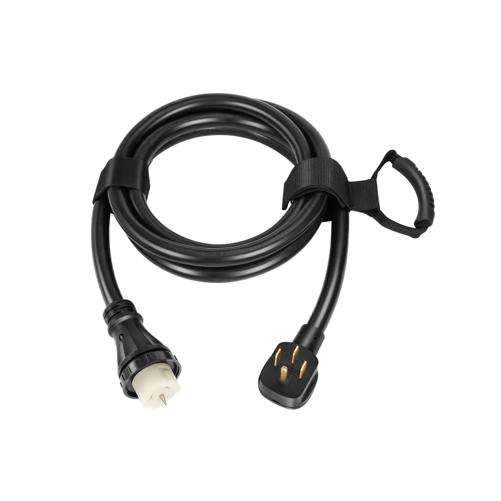 Whole-home backup power: Connect your transfer switch/power inlet box and Double Voltage Hub with an EcoFlow 50 Amp NEMA 14-50P to SS2-50R Generator Cord to keep essential circuits running. This cord required when you connect 2 × DELTA Pro Ultra Inverters to a 50A transfer switch.