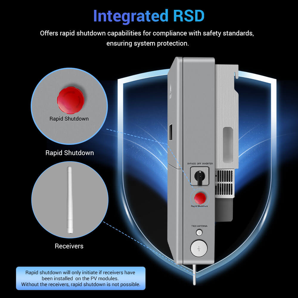★ Compliance: UL1741 SB, UL1741 SA, IEEE1547.1-2020, UL1699B, UL1998, FCC Part15 Class B, California Rule 21, HECO Rule 14H (pending), NEC 690.12-2020,CAN/CSA C22.2107.1-1