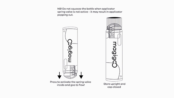 Do not squeeze the bottle like a “ketchup bottle”—this can cause the applicator to pop off.