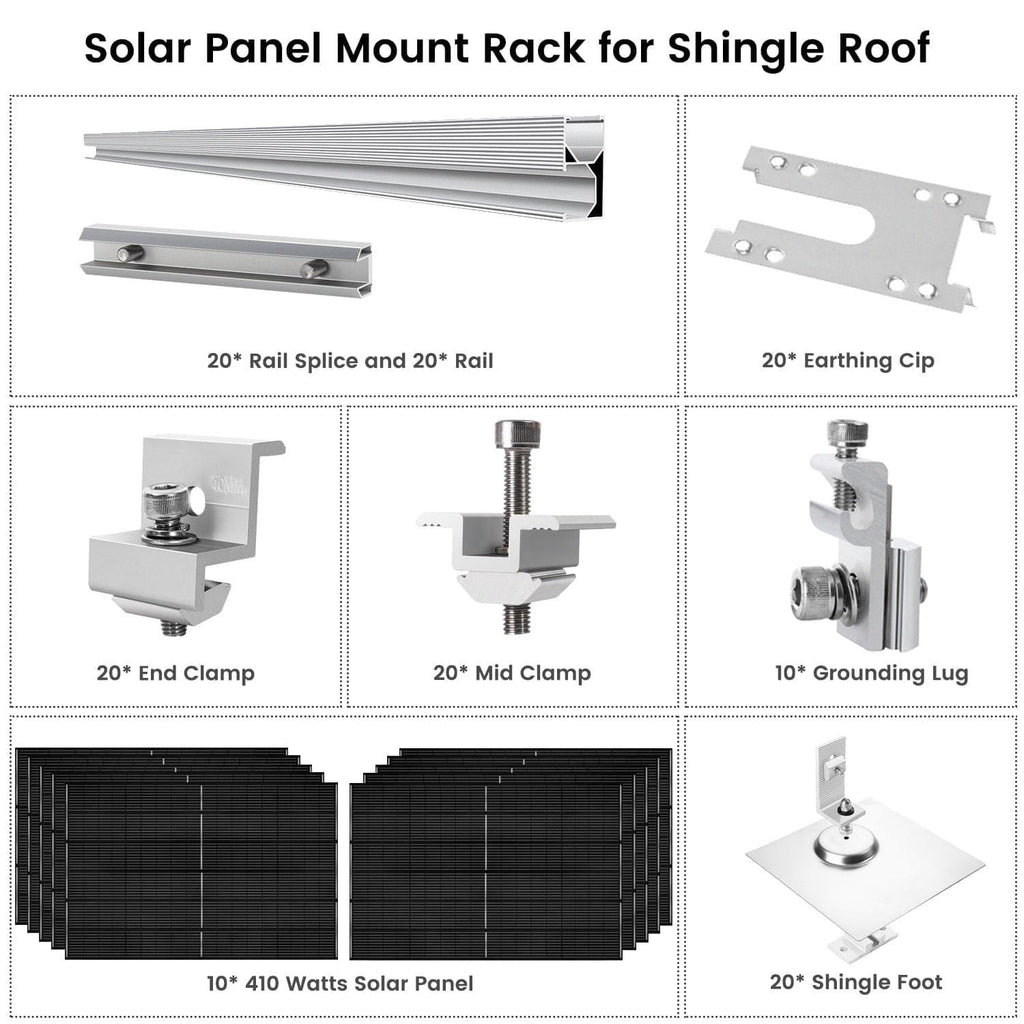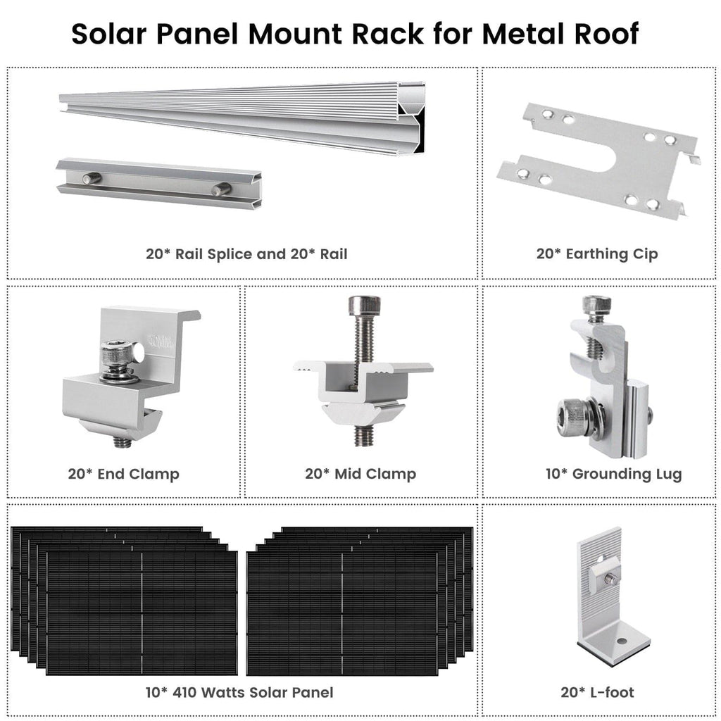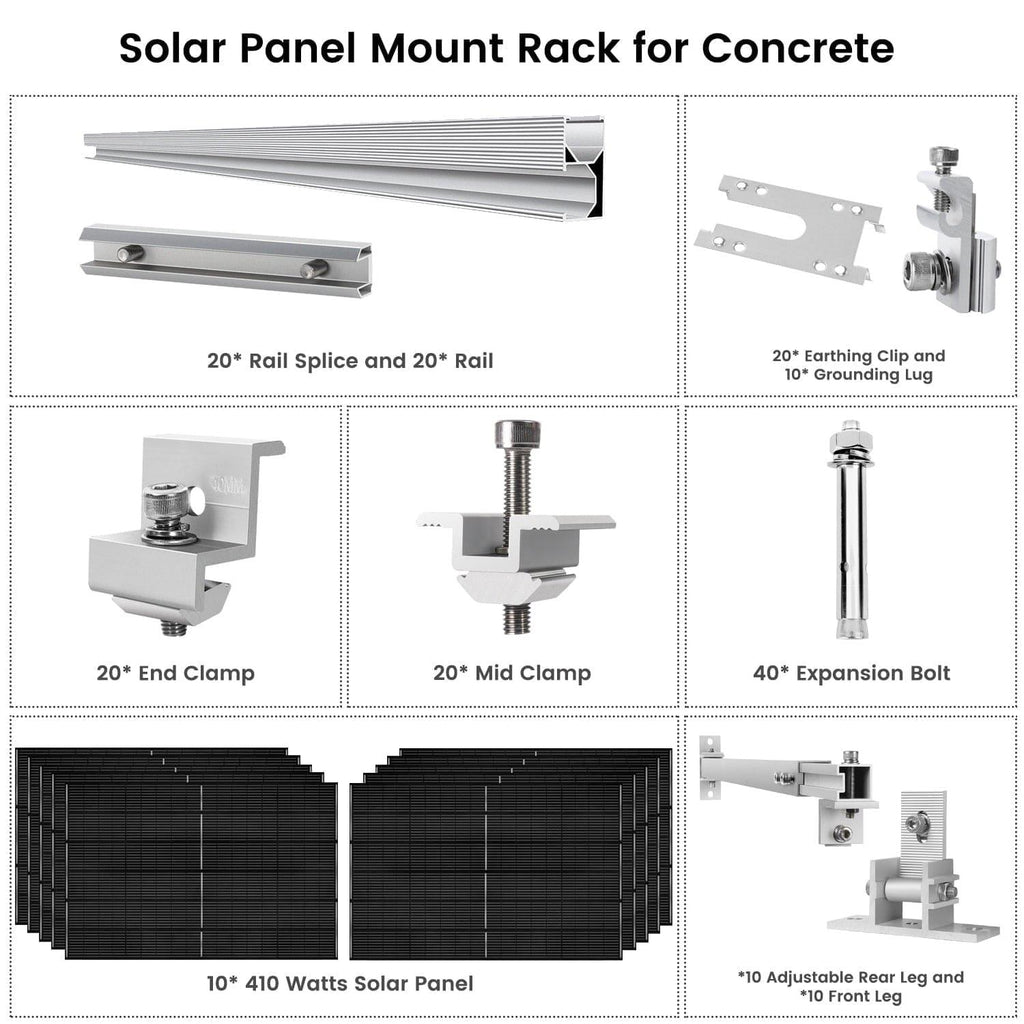 Pack Contents: 10 × 410W Solar Panels, 1 × Solar Panel Mount Rack