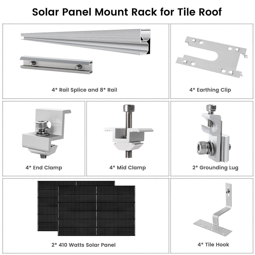 Pack Contents: 2× 410W Solar Panels, 1× Mount Rack