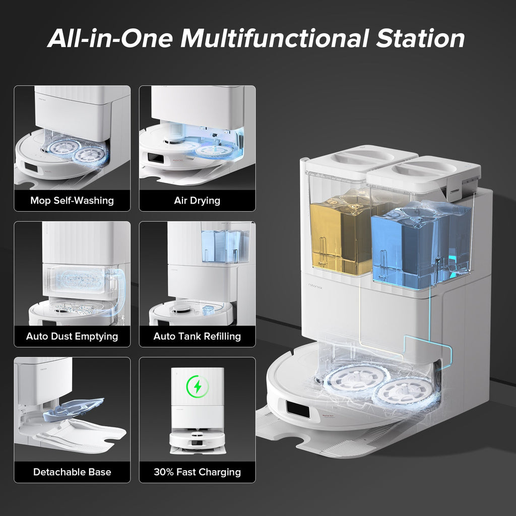 Meet the Roborock QV 35A, where power meets preciision. With 8000Pa HyperForce suction and an All-in-One Station, it delivers ultimate cleaning convenience. The Dual Anti-Tangle System and Reactive Tech Obstacle Avoidance ensure seamless navigation, while Dual Liftable Spinning Mops adapt to any surface. Experience smarter cleaning with taildred Carpet Cleaning Strategies and effortless control via the Roboprock App. Elevate your home with the QV 35A - essential power, redefined.